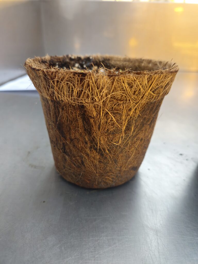 Der Kokosfasertopf saugte sehr viel Wasser auf, blieb dabei aber formstabil. Er zeigte keinerlei Schäden oder Verfärbungen, was ihn besonders für feuchtigkeitsliebende Kulturen interessant macht. Die Keimung fiel mit 0–2 Pflanzen eher gering aus. Positiv hervorzuheben ist jedoch die natürliche Materialwirkung und die gute Durchlüftung.