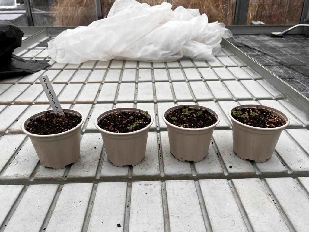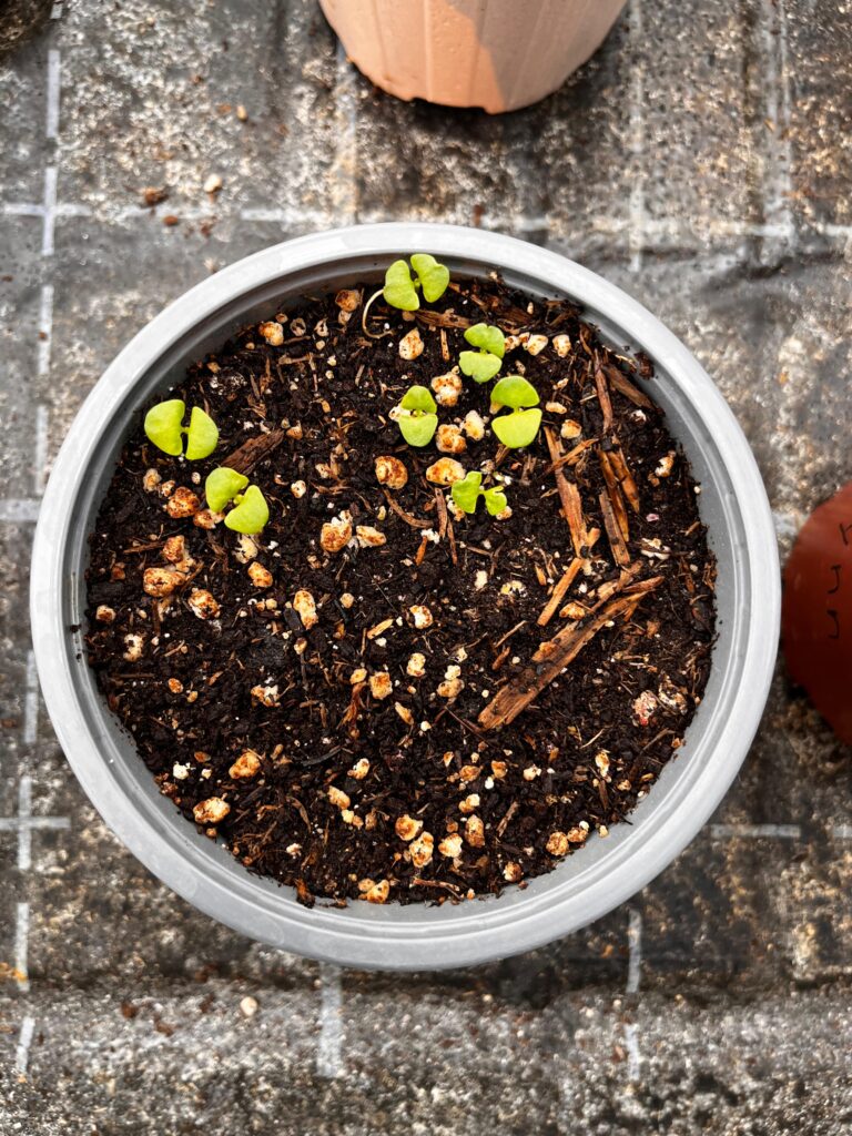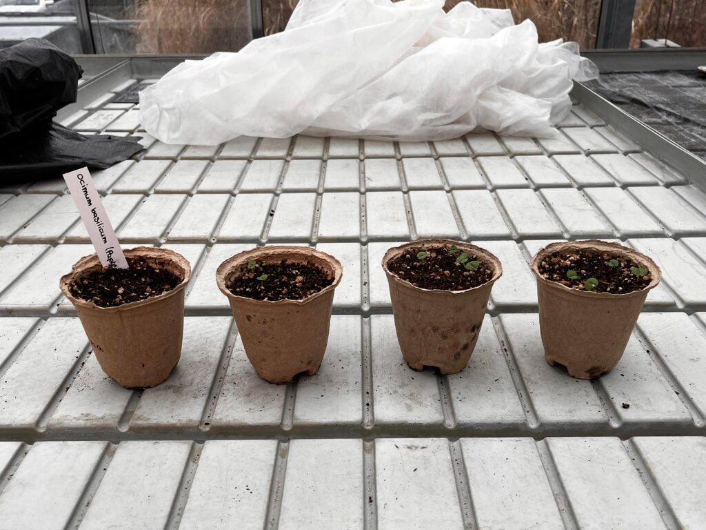 Der „Plenta“‑Topf zeigte nur eine leichte Aufhellung, blieb jedoch stabil und frei von Schimmel oder Algen. Das Material wirkte robust und ausgeglichen in der Feuchtigkeitsregulation. Die Basilikumkeimlinge entwickelten sich leicht verzögert, was an nicht perfekten Bedingungen im Gewächshaus lag.