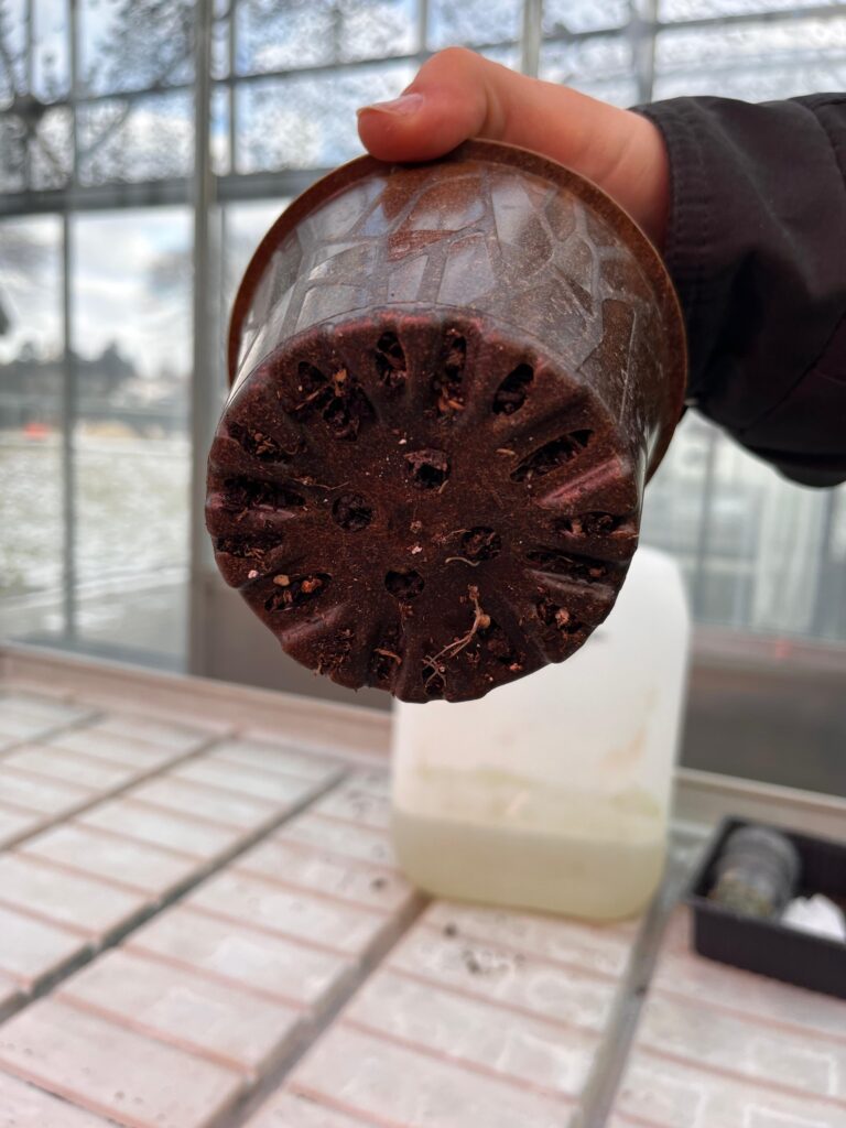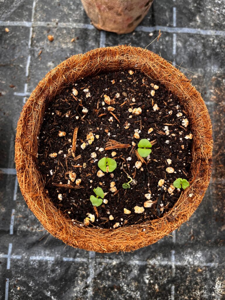 Der Kokosfasertopf nahm viel Wasser auf und zeigte dadurch leichte Schimmelbildung, blieb jedoch formstabil. Trotz der hohen Feuchtigkeit bot er den Keimlingen ein gutes Wachstumsumfeld, und die Pflanzen konnten sich etwas verzögert entwickelten.