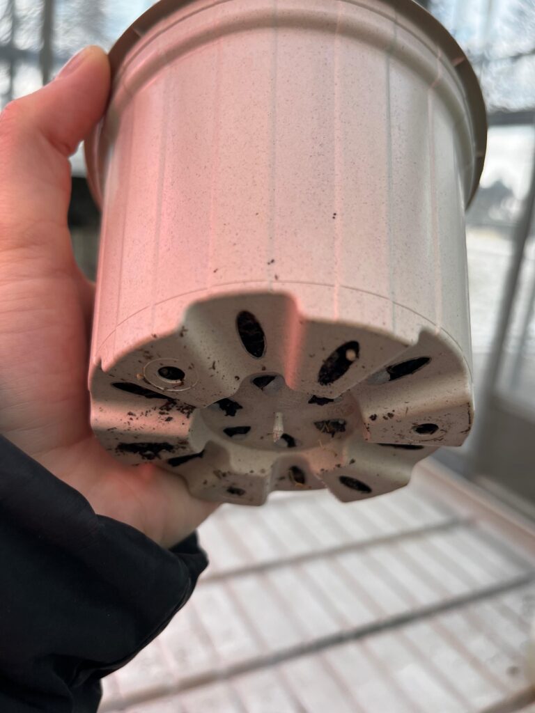 Der Kunststofftopf veränderte sich erwartungsgemäß überhaupt nicht. Das Material blieb trocken, sauber und stabil, ohne biologische Aktivität. Die Pflanzen entwickelten sich auch leicht verzögert, allerdings ohne den nachhaltigen Vorteil der biologisch abbaubaren Alternativen.