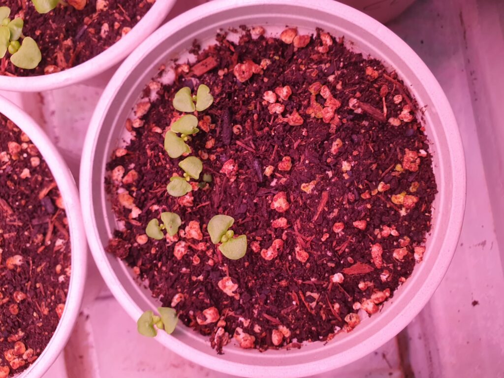 Der „Organi Pot“ blieb während des gesamten Beobachtungszeitraums vollkommen unverändert. Weder Verfärbungen noch strukturelle Veränderungen traten auf, und auch Schimmel oder Algen bildeten sich nicht. Durch diese stabile Materialeigenschaft konnten sich die Pflanzen sehr gut entwickeln und zeigten bereits vier bis sechs gut ausgebildete Primärblätter.