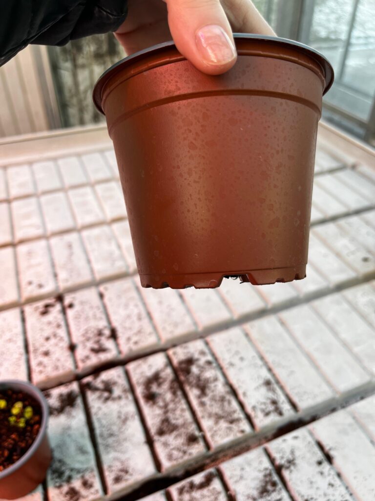 Der Kunststofftopf blieb komplett unverändert und zeigte keinerlei Schimmel oder strukturelle Auffälligkeiten. Die Pflanzen entwickelten 5–7 Primärblätter, was ein sehr konstantes Wachstumsbild ergibt, und bestätigt erneut die Stabilität dieses klassischen Topfmaterials.